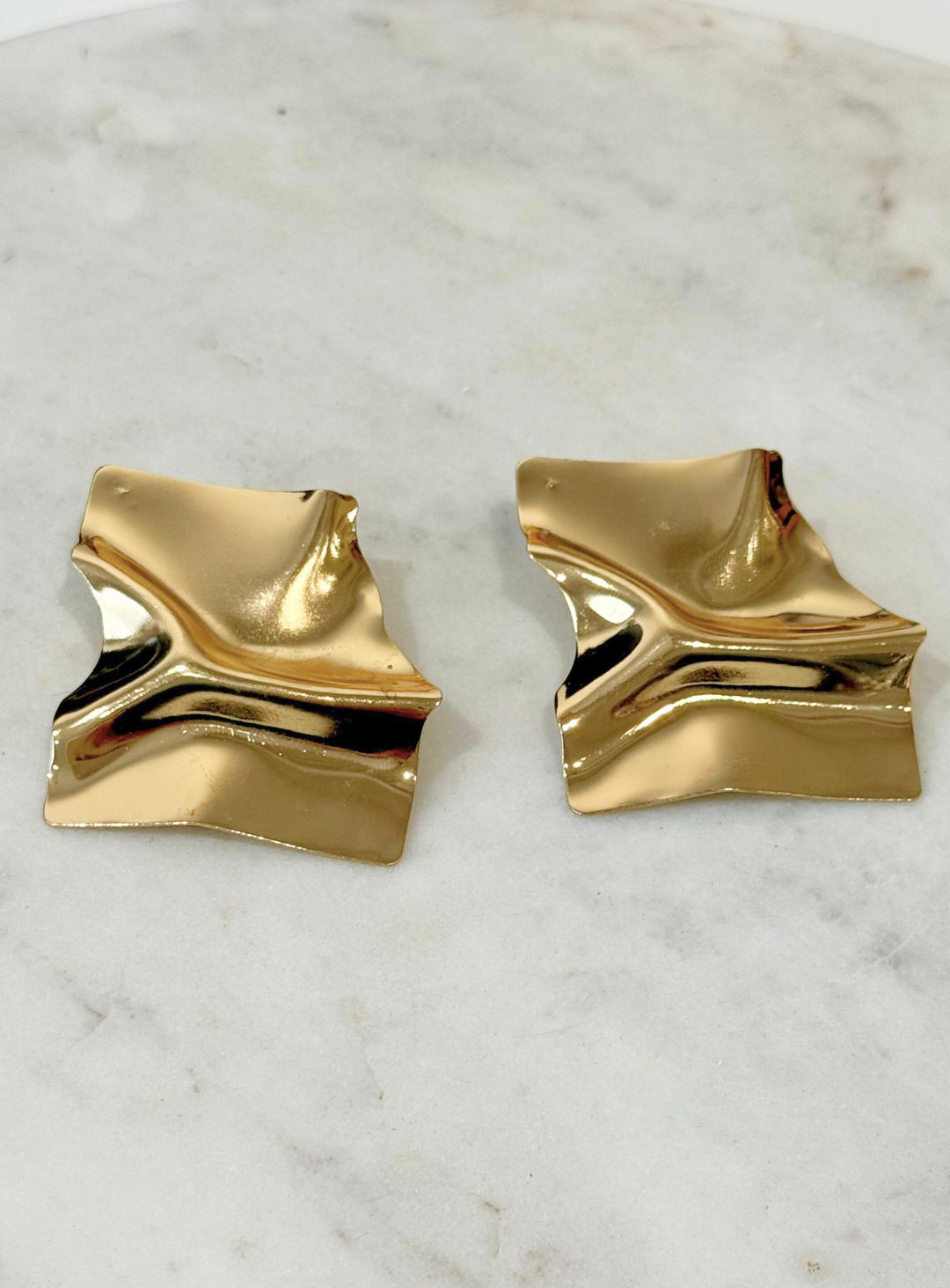 A gorgeous pair of chunky earrings. Featuring a 3D wave shape, these are the perfect statement gold earring!