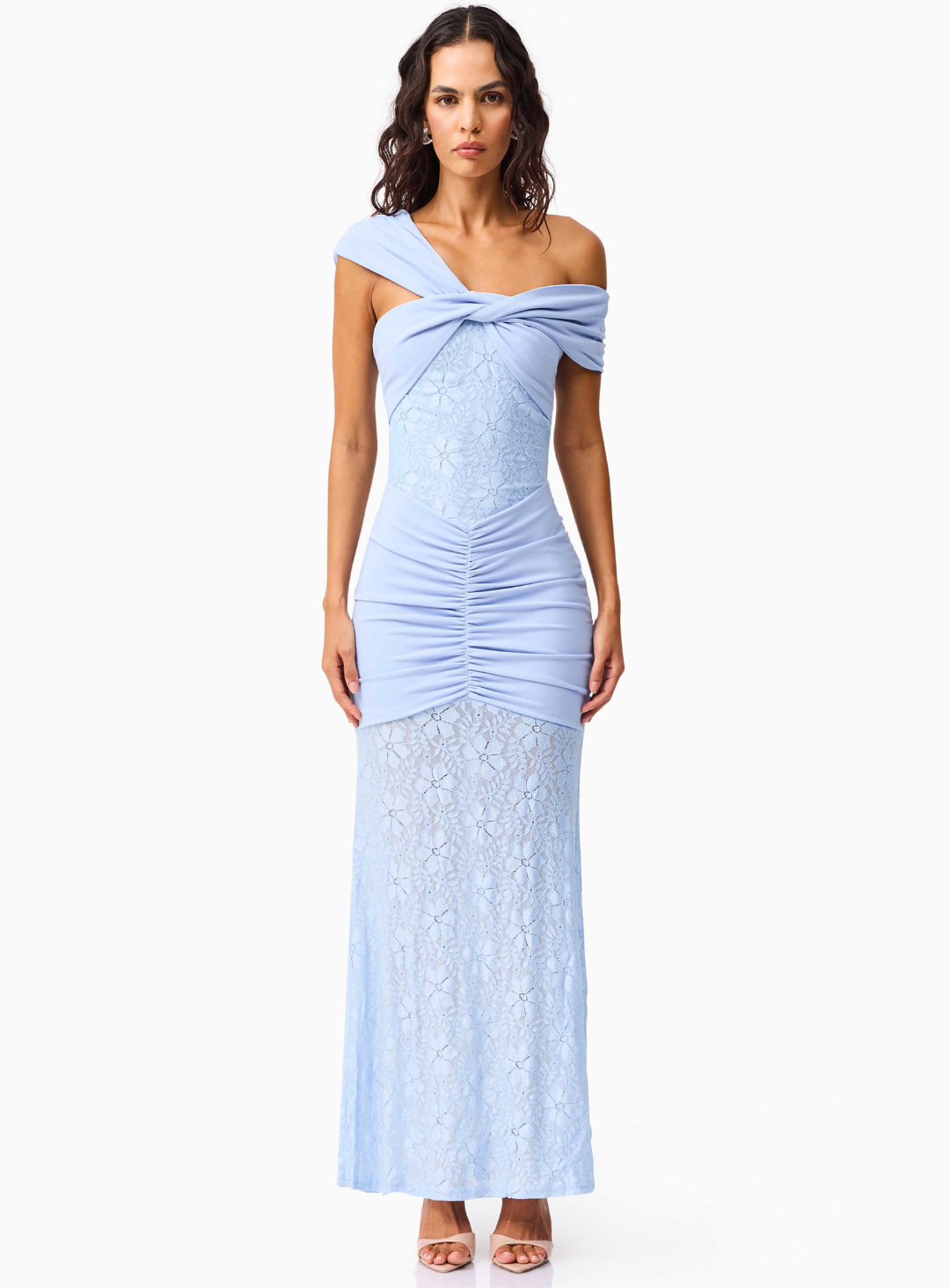 The Valencia Gown is a breathtaking full-length dress by Elliatt. Crafted from contrasting crepe and lace fabrications, this striking design features an elegant asymmetric neckline, artful ruching through the skirt, and a form-fitting bodice that sculpts the silhouette with refined sophistication. Perfect for black-tie events, formal weddings, or an unforgettable evening occasion.