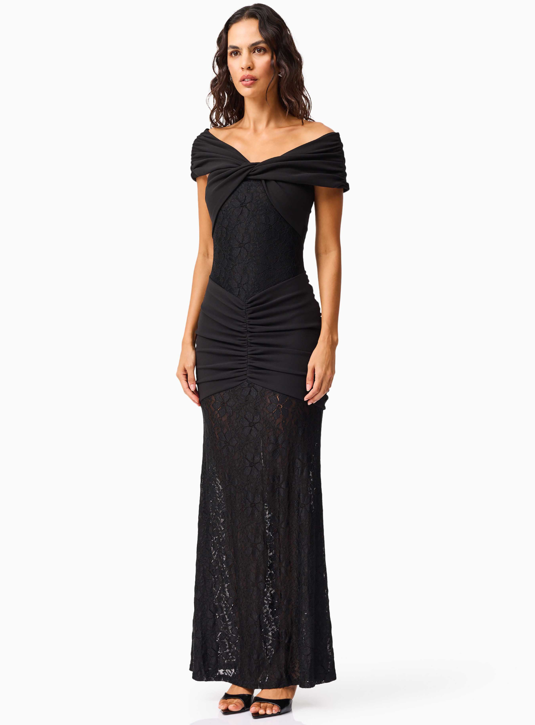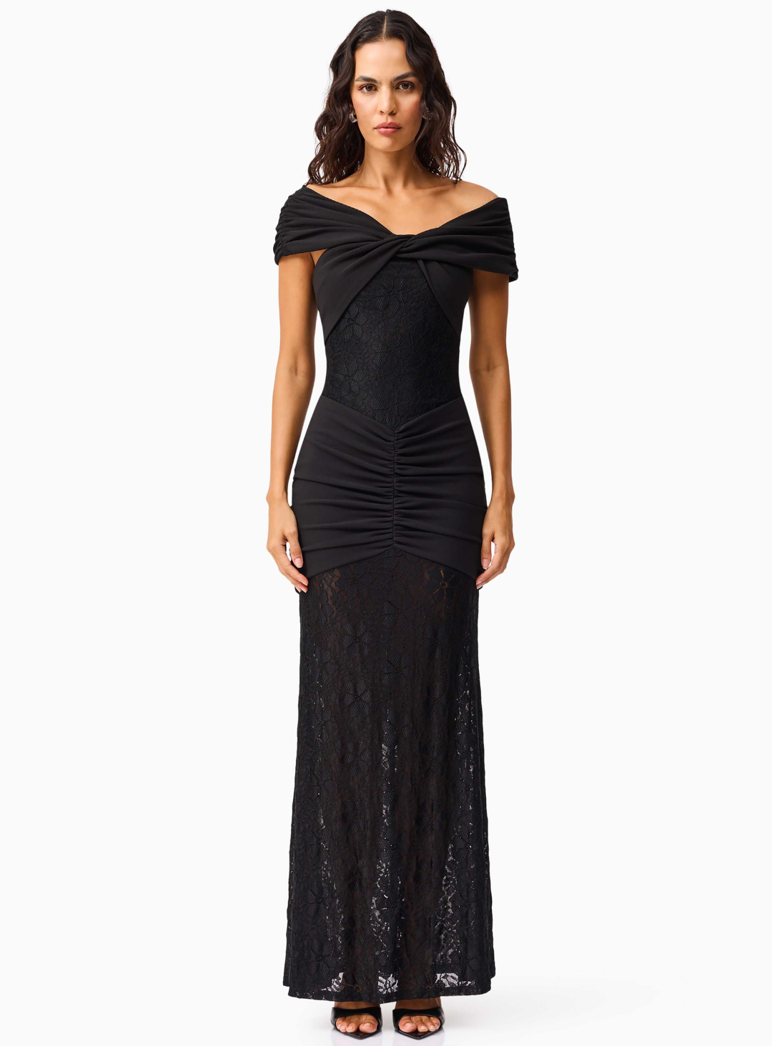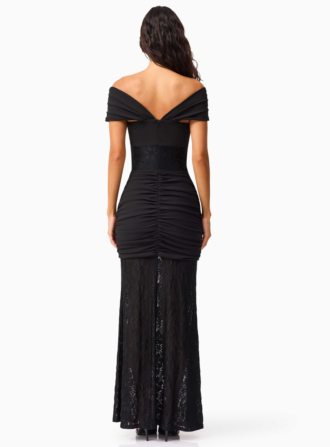 The Valencia Gown is a gorgeous full length dress by Elliatt. Crafted from contrasting crepe and lace fabrications, this striking design features an elegant asymmetric neckline, flattering ruching across the skirt, and a form-fitting bodice that sculpts the silhouette to perfection. A timeless choice for black-tie events, formal weddings, or an elevated evening affair.