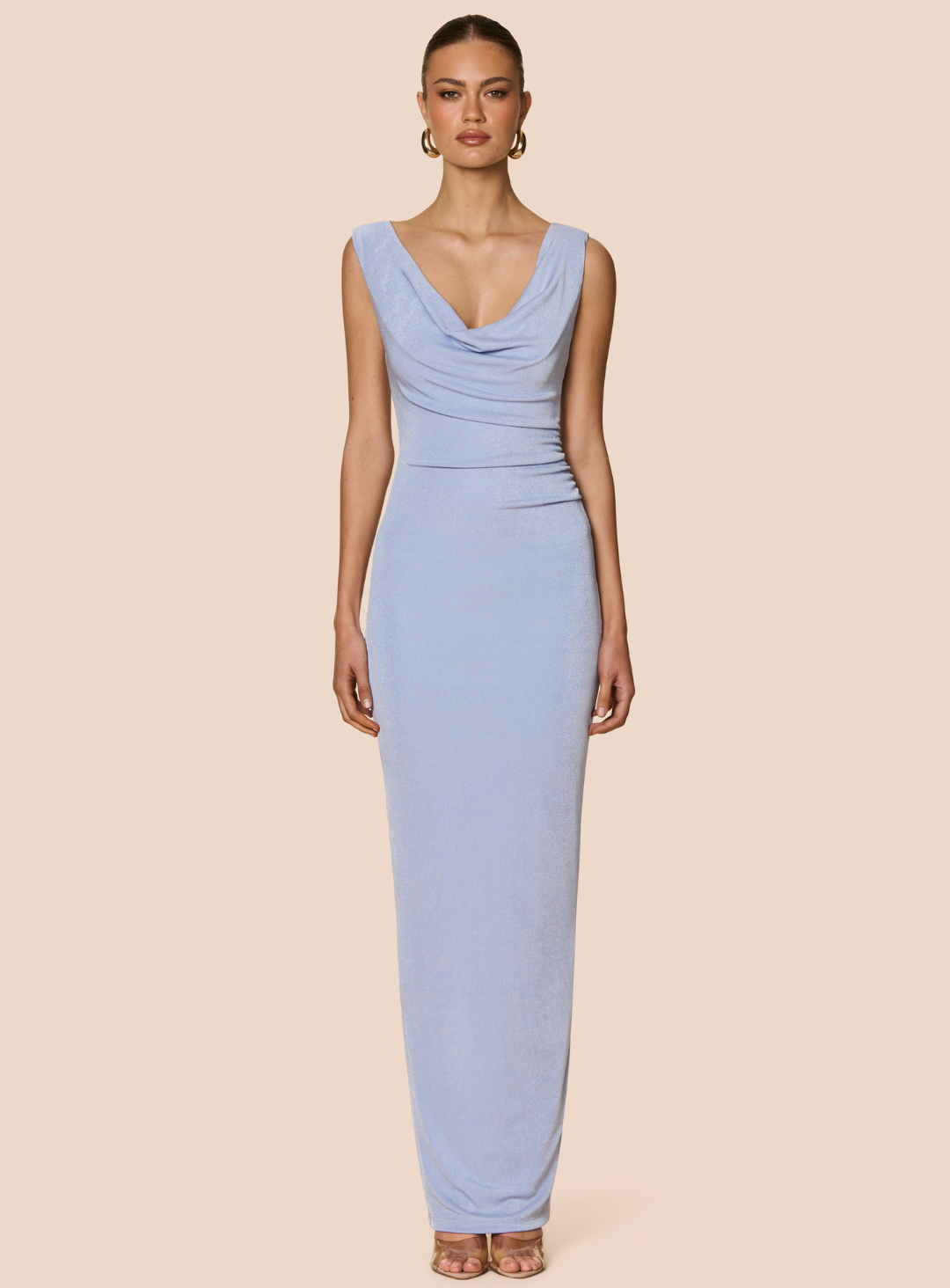 The Nookie Crush Maxi is a sleek and sophisticated maxi dress designed to flatter from every angle. Crafted in a soft stretch fabric, this fitted silhouette features elegant draping through the bodice with a softly cowl neckline that enhances the décolletage.