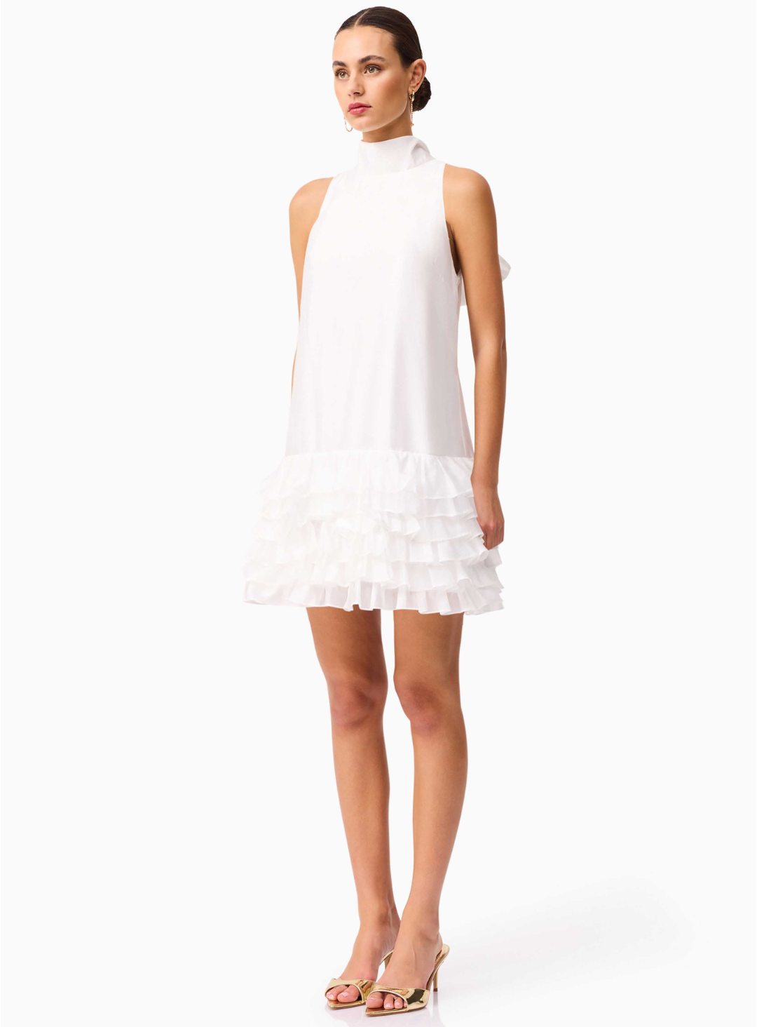 The Tahlia Mini is a gorgeous mini length dress by Elliatt. Crafted from a gorgeous lightweight satin, this shift dress features rosette detailing on the hem with a tie up back.